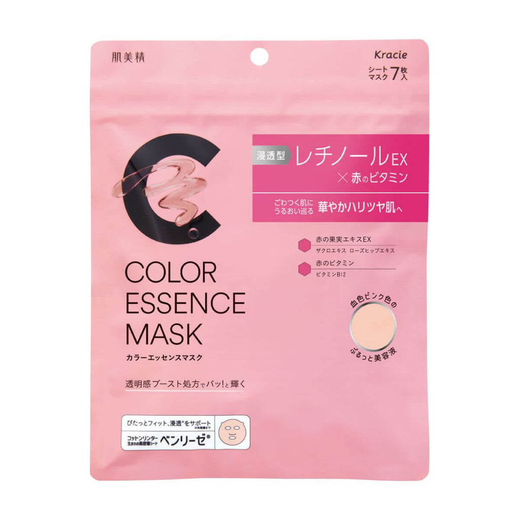Hadabisei Kracie Color Essence Face Mask 7 Sheets - Pink