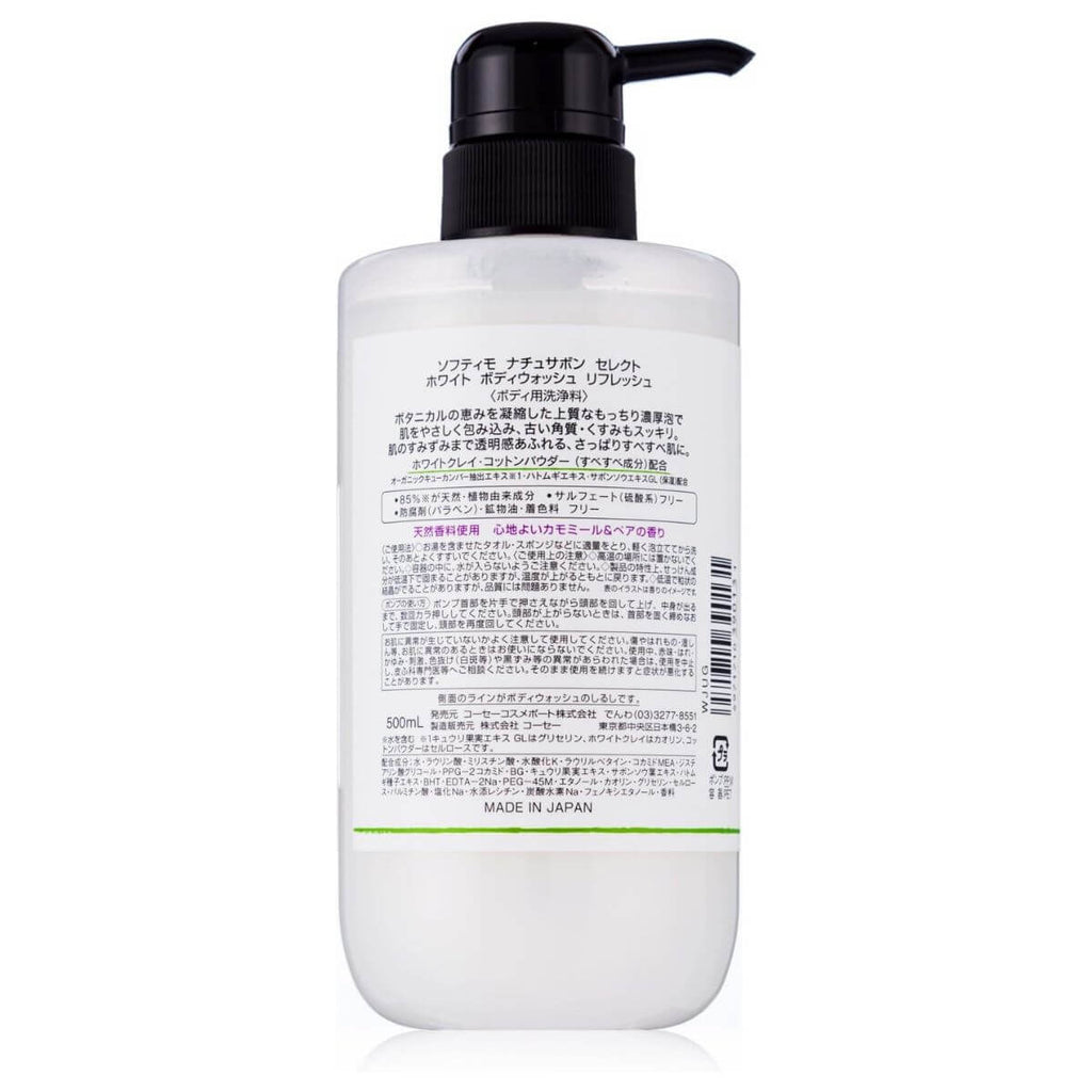 Kose Softymo Natu Savon Select White Body Wash Refresh - 500ml, Kose Softymo Harajuku Culture Japan shop sell Japanese Beauty/Cosmetics/Health care/stationery products sell to world wide. Standard delivery is Free shipping.We handle many Japanese brands.